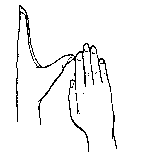 HANDPOSITION: The tips of thumb and ring finger of the left hand touch each other. Other fingers pointing upward.